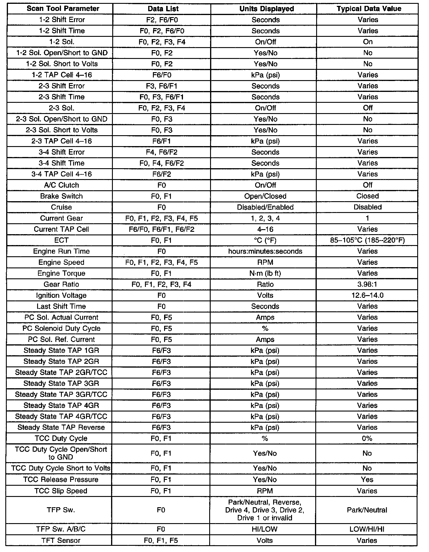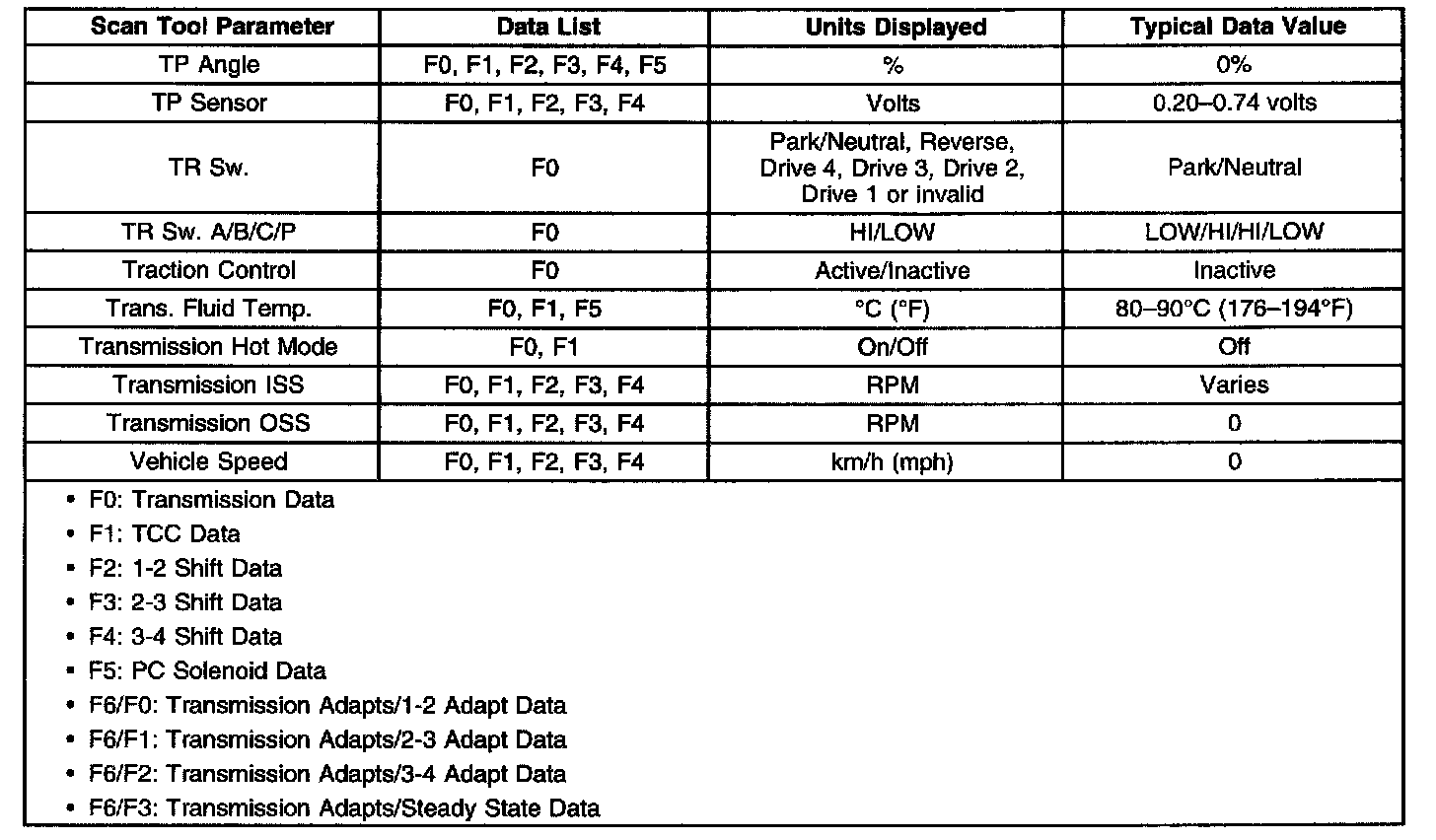 Transmission Scan Tool Data ListUse the scan tool data values under the following conditions:
