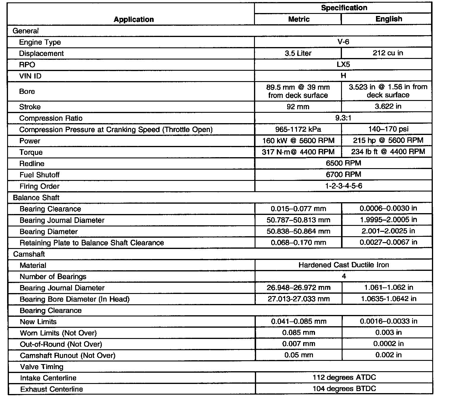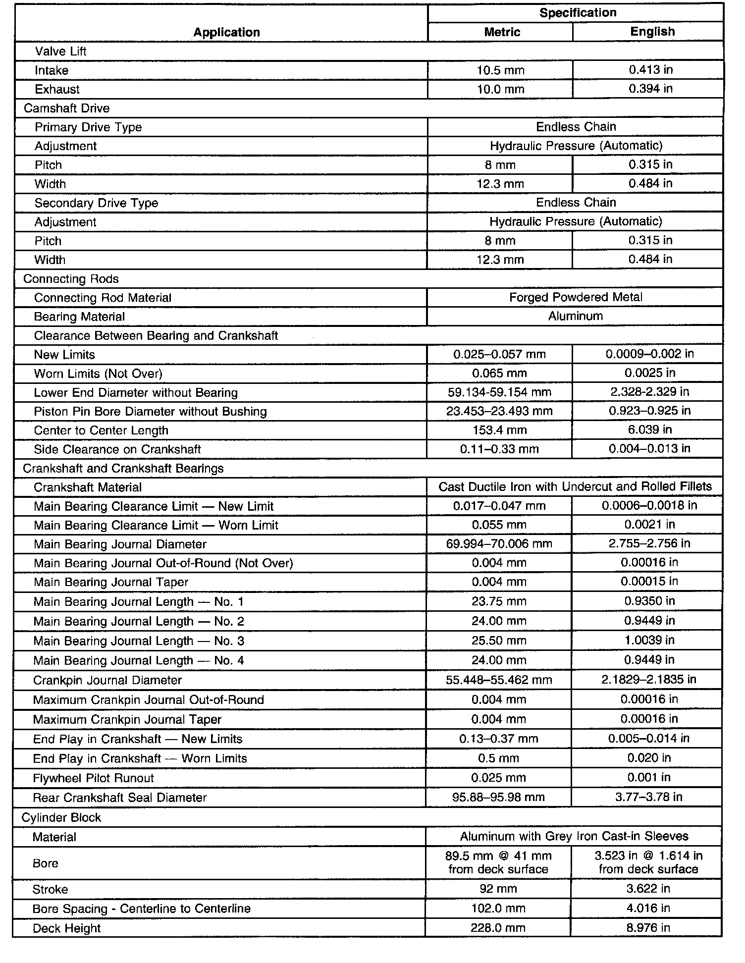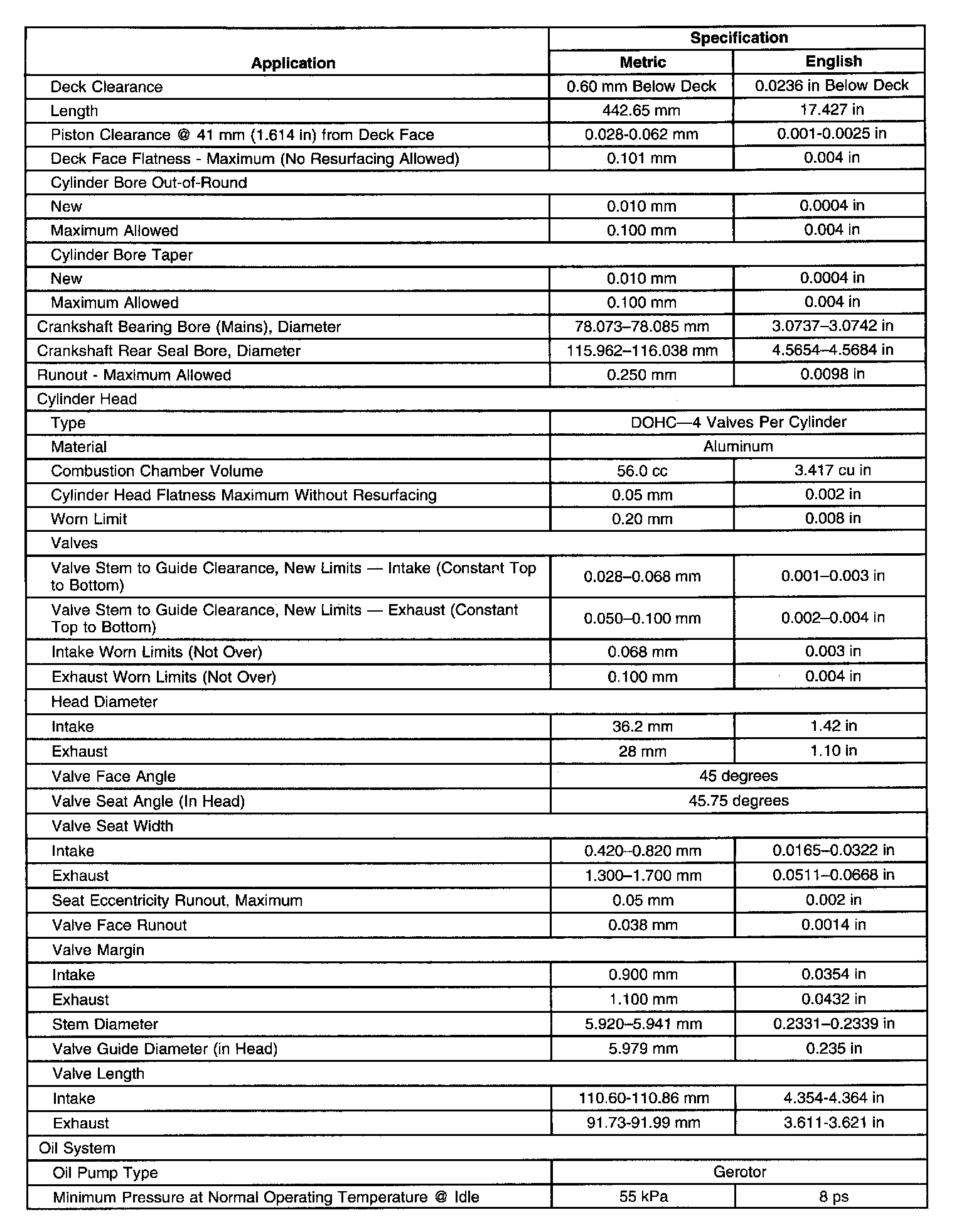 Engine Mechanical Specifications
