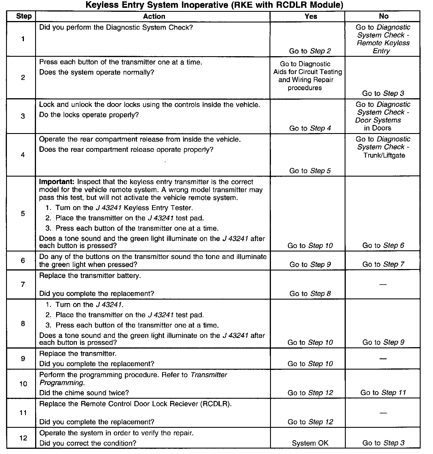 Keyless Entry System Inoperative (RKE With RCDLR Module)