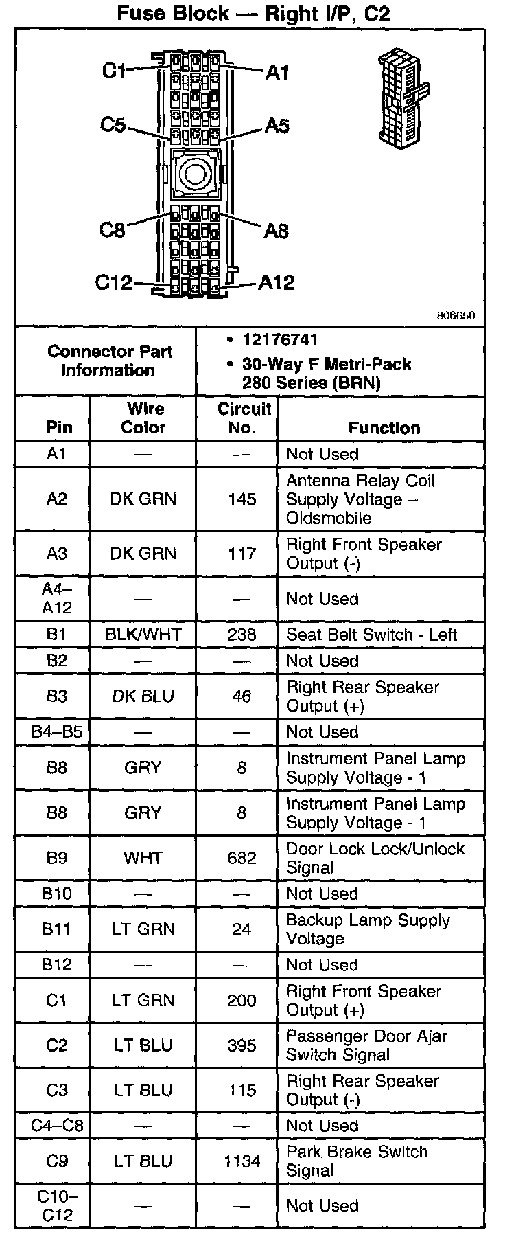 Fuse Block - Right I/P, C2: