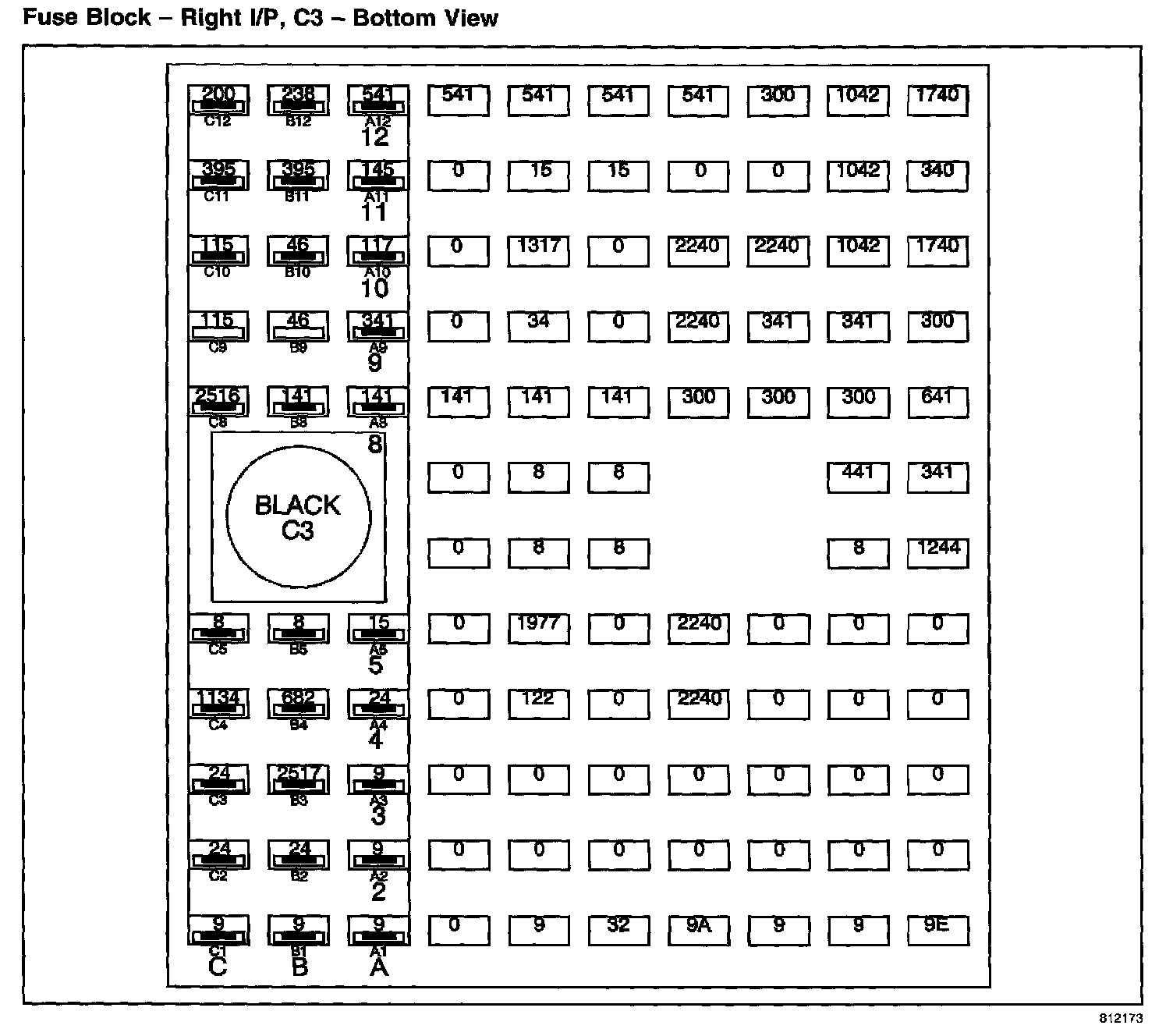 Fuse Block - Right I/P, C3 - Bottom View: