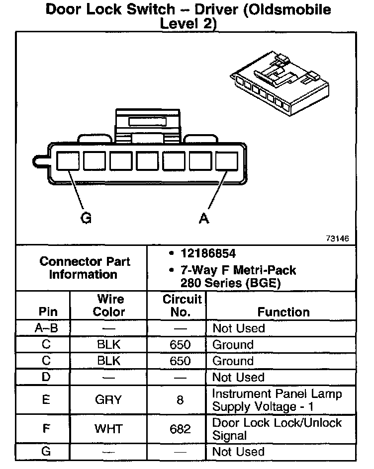 Door Lock Switch - Driver (Oldsmobile Level 2):