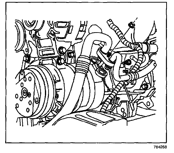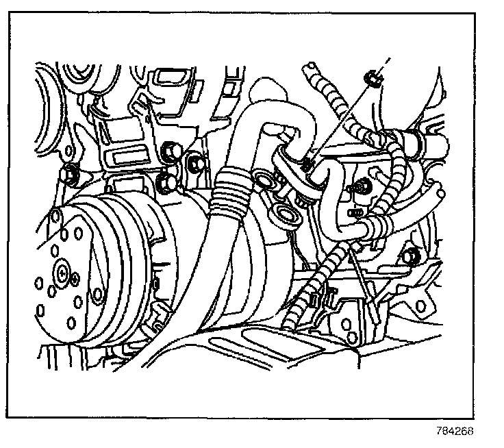 7. Remove the Compressor hose assembly bolt from the compressor.