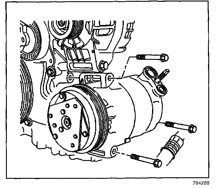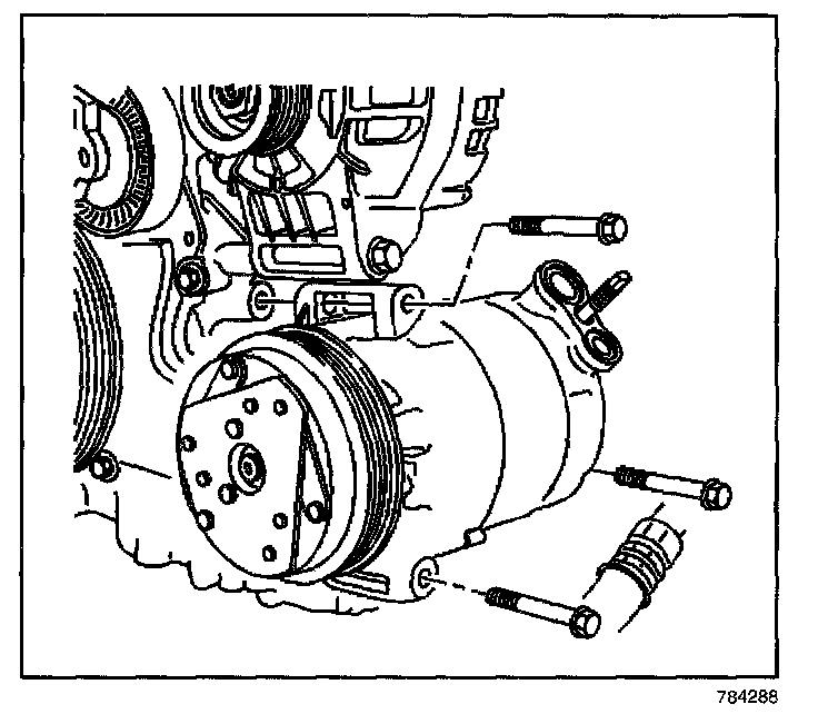 10. Remove the compressor mounting bolts.