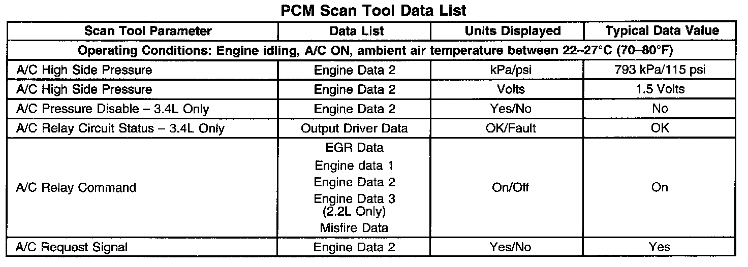 Scan Tool Data List - Powertrain Control Module (PCM)