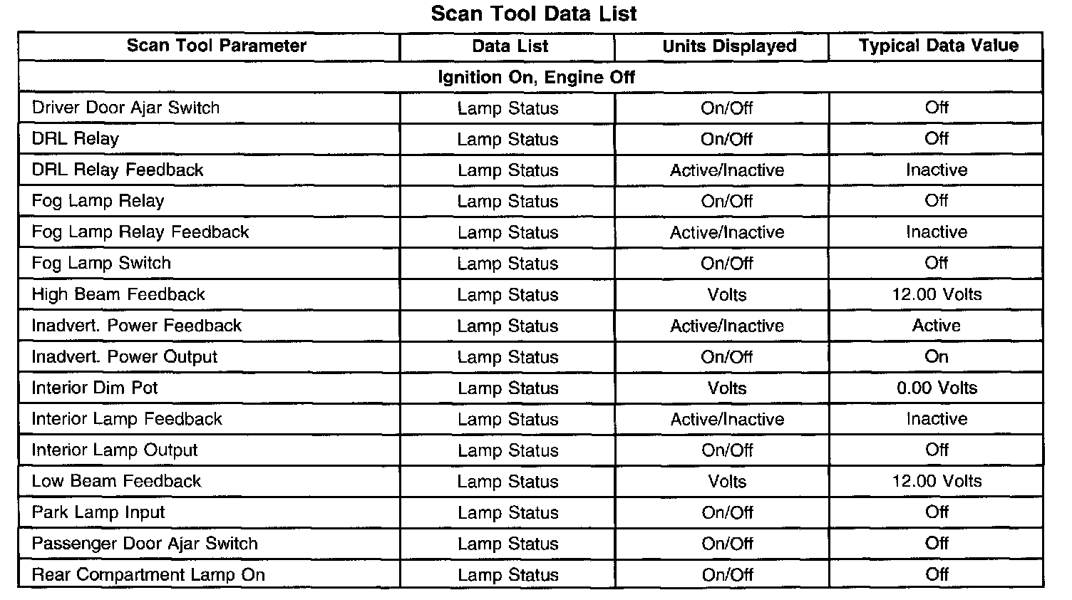 Scan Tool Data List: