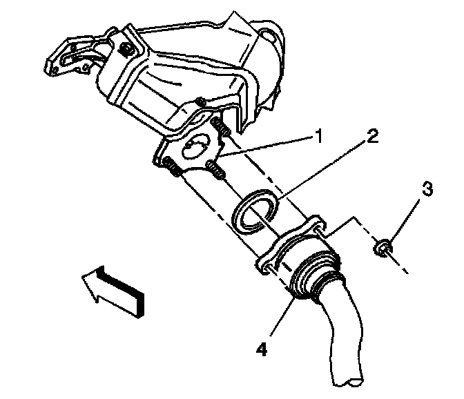 5. Remove the exhaust flex decoupler (4) from the exhaust manifold (1).