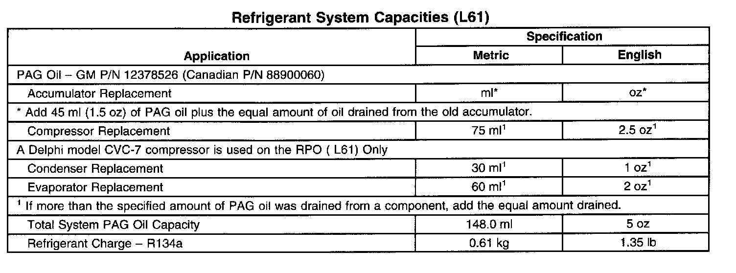 Refrigerant System Capacities (L61) - Heating, Ventilation And Air Conditioning: