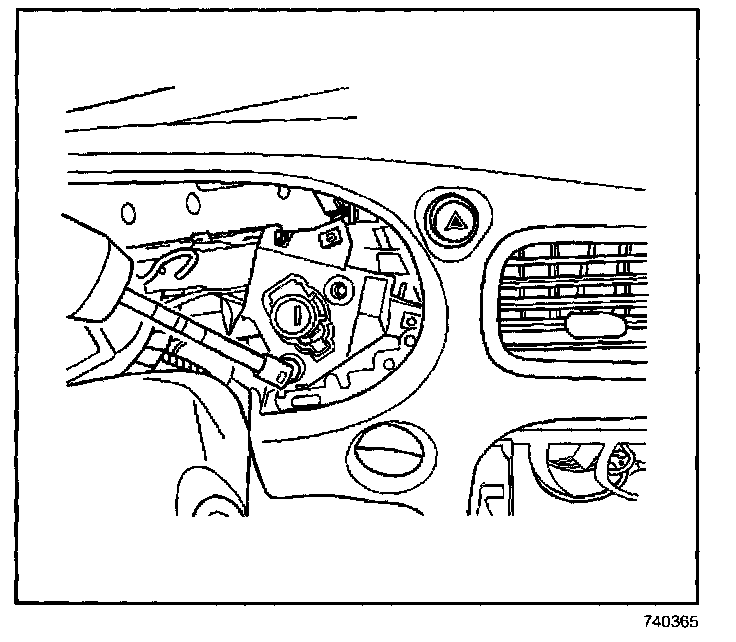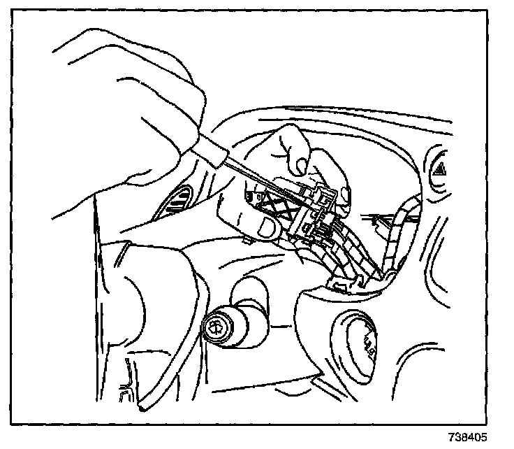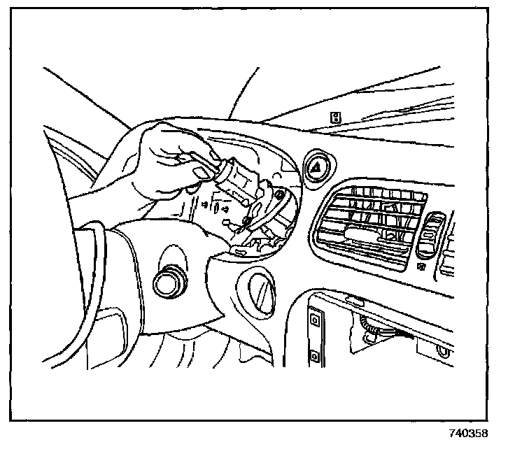 14. Remove the ignition switch through the I/P cluster opening.