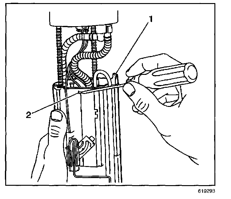 2. Remove the fuel pump and fuel level sensor electrical retaining clip at the top of the fuel sender assembly.