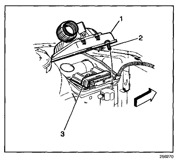 4. Remove the PCM (1) from the lower air cleaner housing.