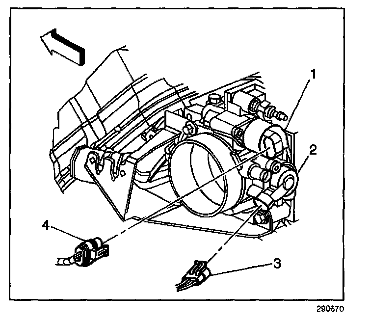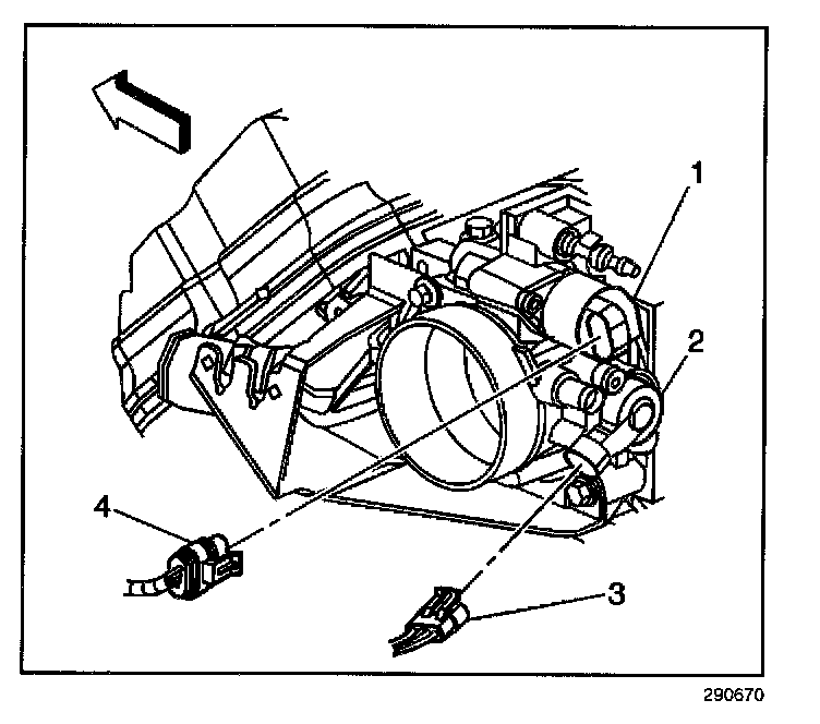 2. Disconnect the throttle position (TP) sensor electrical connector (3).
