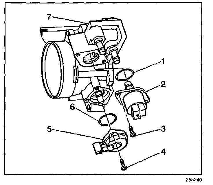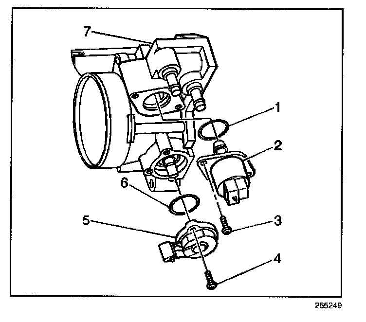 4. Remove the TP sensor (5) from the throttle body (7).