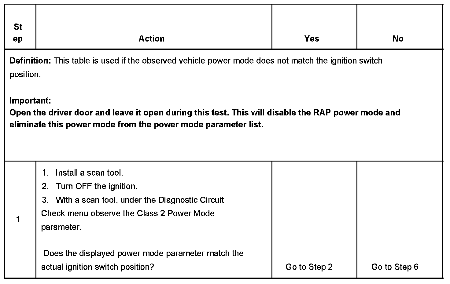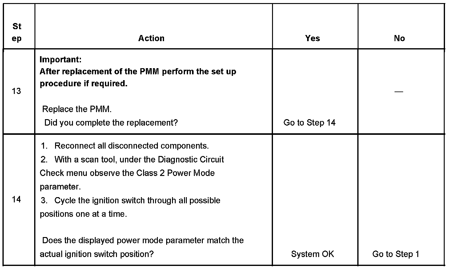 Normal vehicle class 2 communications and module operations will not begin until the system power mode has been identified. Discrete wires from the ignition switch contacts are monitored by the power mode master, PMM module in order to determine the correct power mode. The PMM communicates the system power mode to all class 2 modules on the class 2 serial data line.