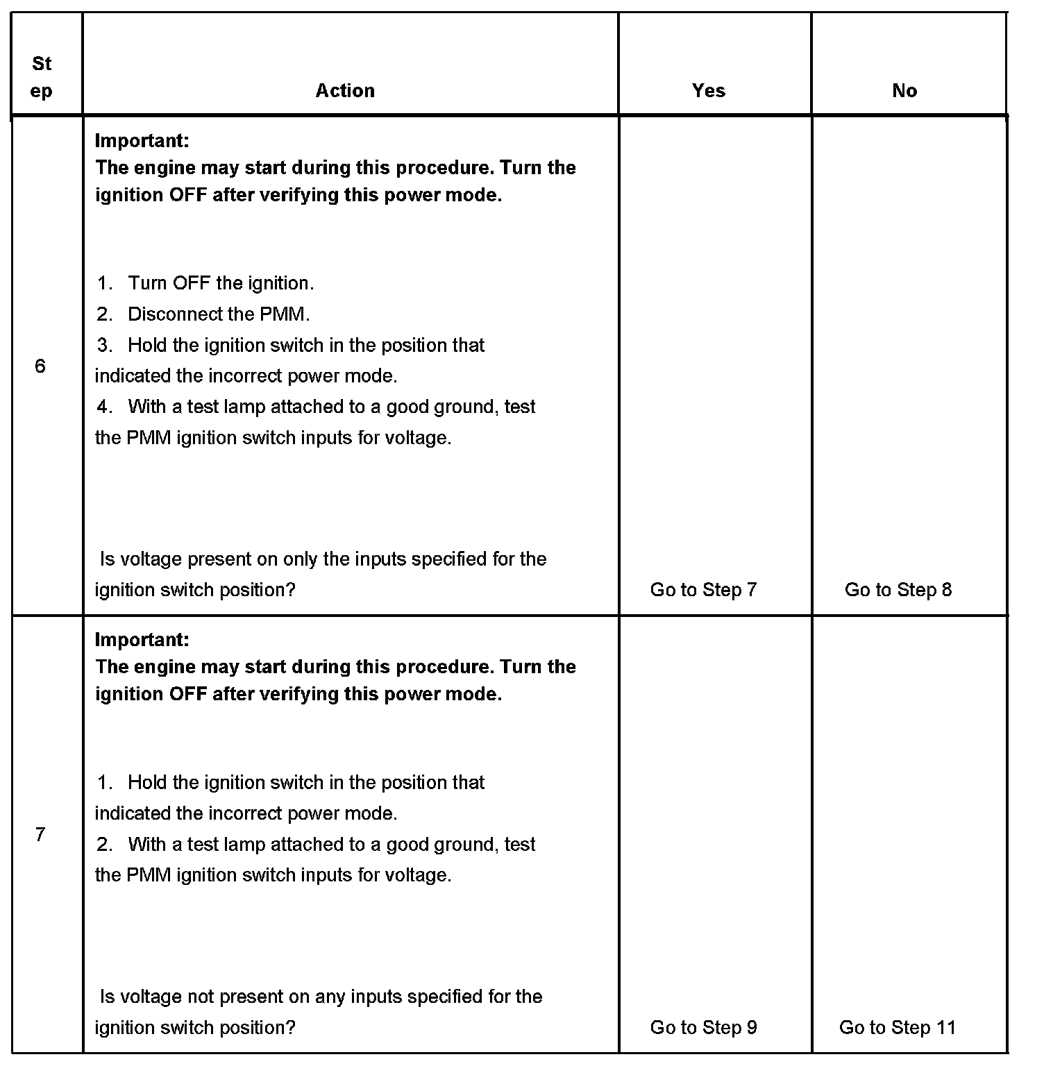 7. This step tests for no battery voltage on the required signal circuits.