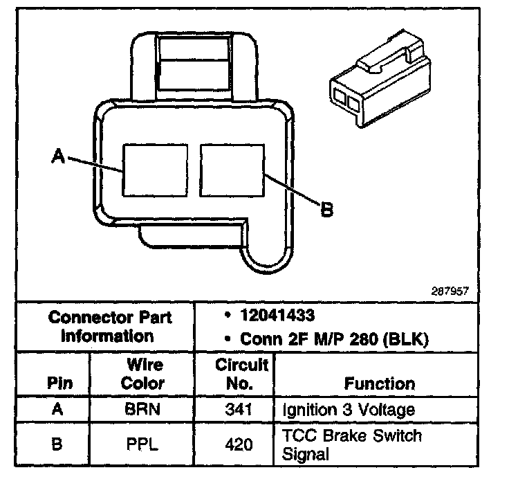 Cruise Control Brake Switch Connector, Wiring Harness Side: