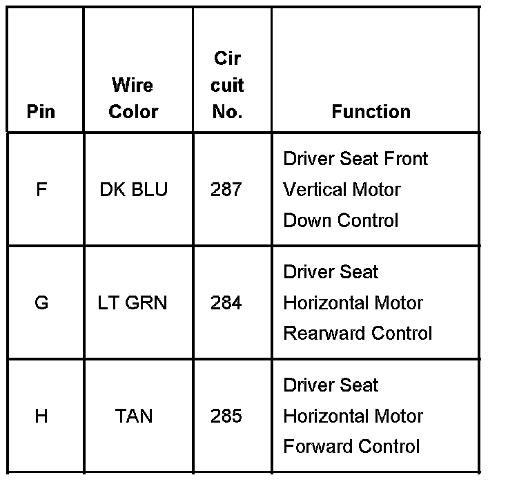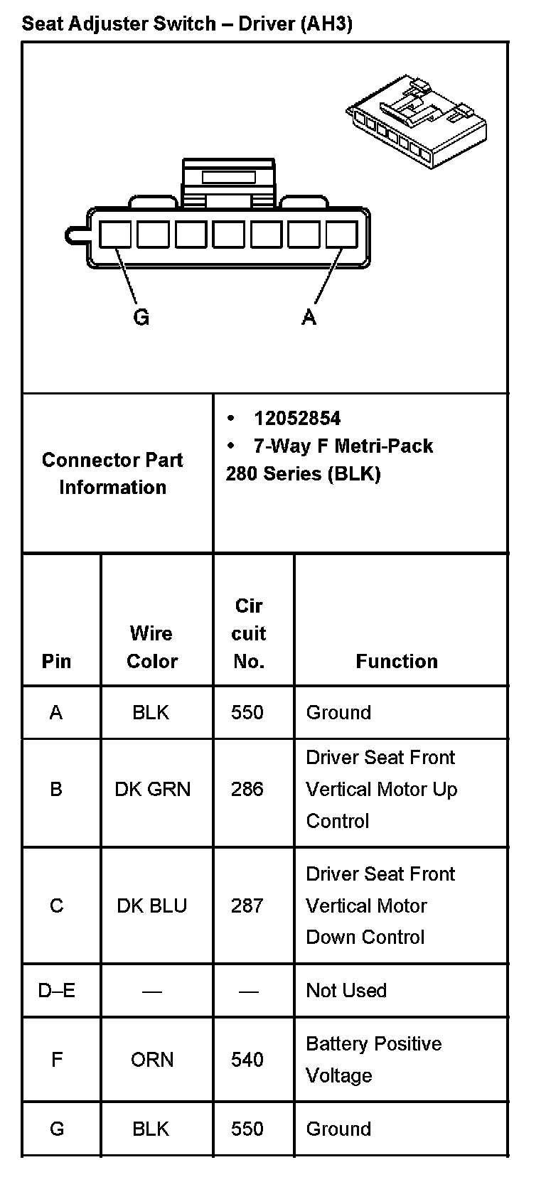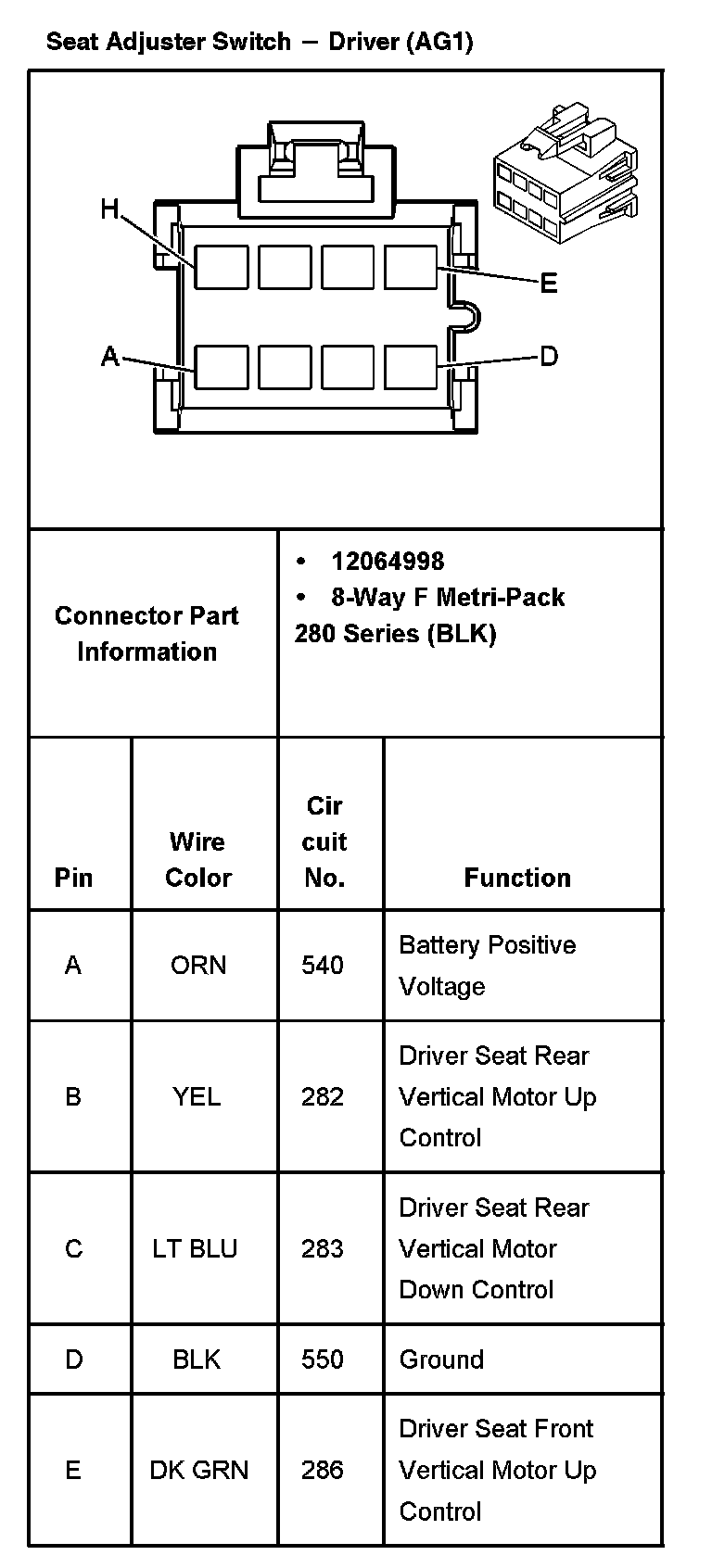 Seat Adjuster Switch - Driver (With RPO Code AG1) Part 2: