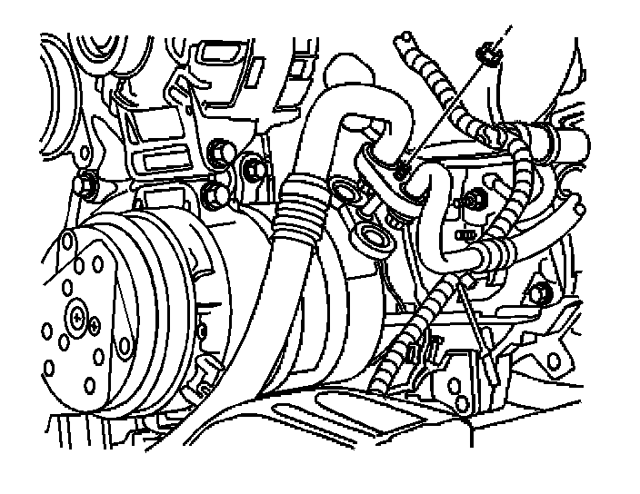 7. Remove the compressor hose assembly bolt from the compressor.