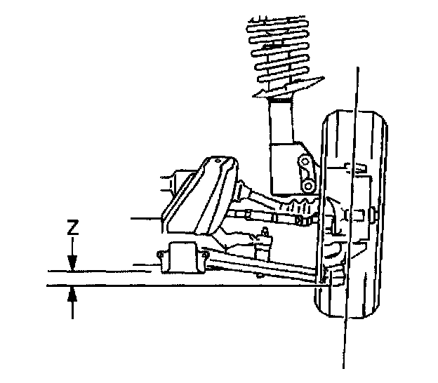 The Z height dimension measurement determines the proper ride height for the front end of the vehicle. There is no adjustment procedure. Repair may require replacement of suspension components.