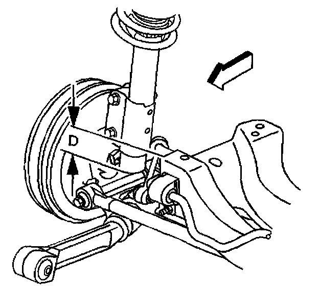 The D height dimension measurement determines the proper rear end ride height. There is no adjustment procedure. Repair may require replacement of suspension components.