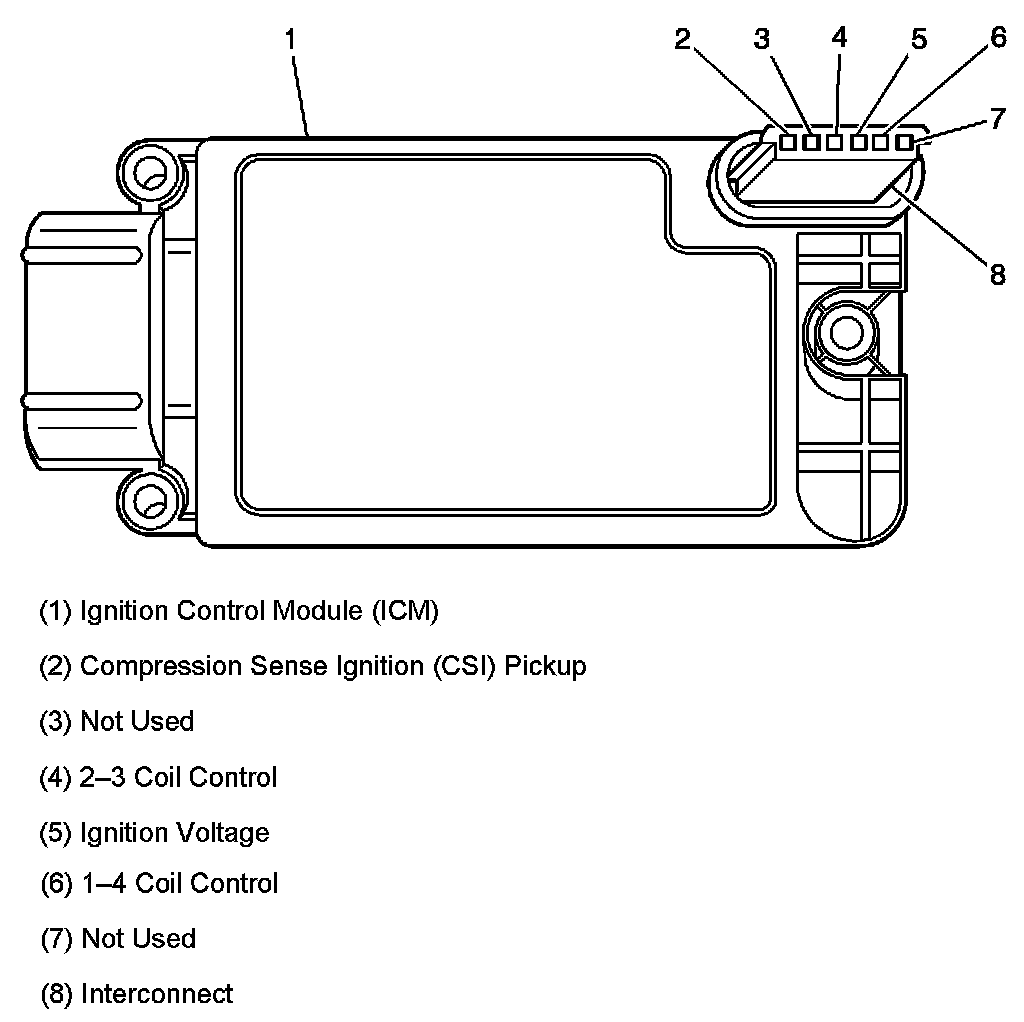 Each ignition coil is responsible for supplying secondary energy to a pair of spark plugs. The ignition control signals output by the PCM are amplified by the ICM in order to fire each coil. The spark events are triggered by the ICM, but the module has no influence on spark timing. The ICM is also responsible for detecting and supplying a camshaft position (CMP) signal pulse to the PCM to be used for sequential fuel injection. This ignition system does not use a conventional CMP sensor that detects valve train position. The ICM detects when either cylinder 1 or cylinder 3 has fired on the cylinders compression stroke using sensing circuitry integrated within each coil. The sensing circuit detects the polarity and the strength of the secondary voltage output, the higher output is always at the event cylinder. The ICM sends a CMP signal to the PCM based on the voltage difference between the event and waste cylinder firing energy. This system is called compression sense ignition. By monitoring the camshaft position and crankshaft position (CKP) signals the PCM can accurately time the operation of the fuel injectors.