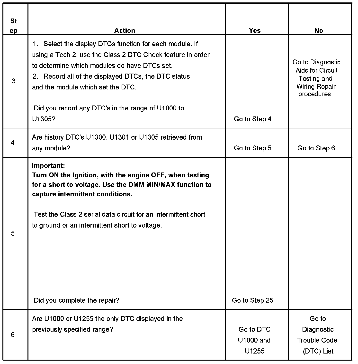 2. A partial malfunction in the Class 2 serial data circuit uses a different procedure from a total malfunction of the Class 2 serial data circuit.