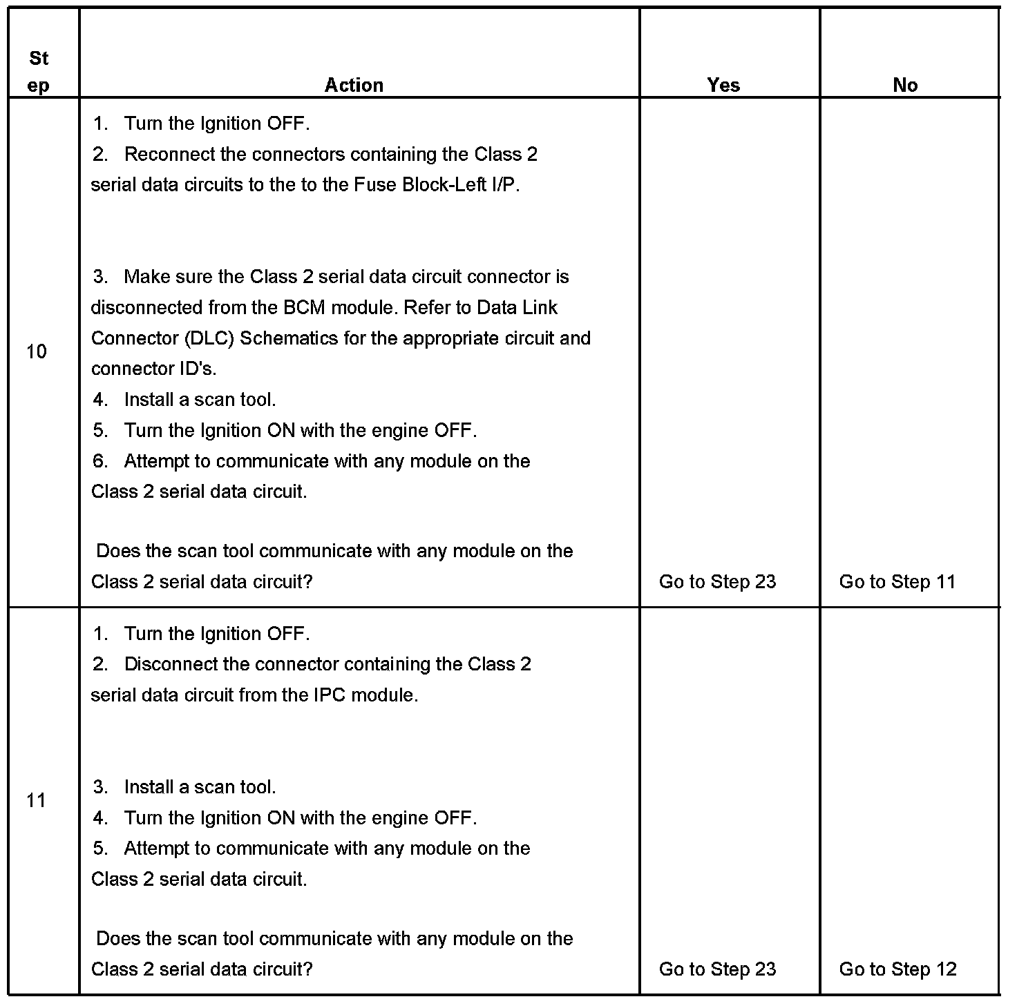11. This is an active test of the Class 2 serial data circuit with the IPC isolated from the communication bus. If you are able to communicate with the Class 2 serial data circuit during this step, the IPC should be replaced.