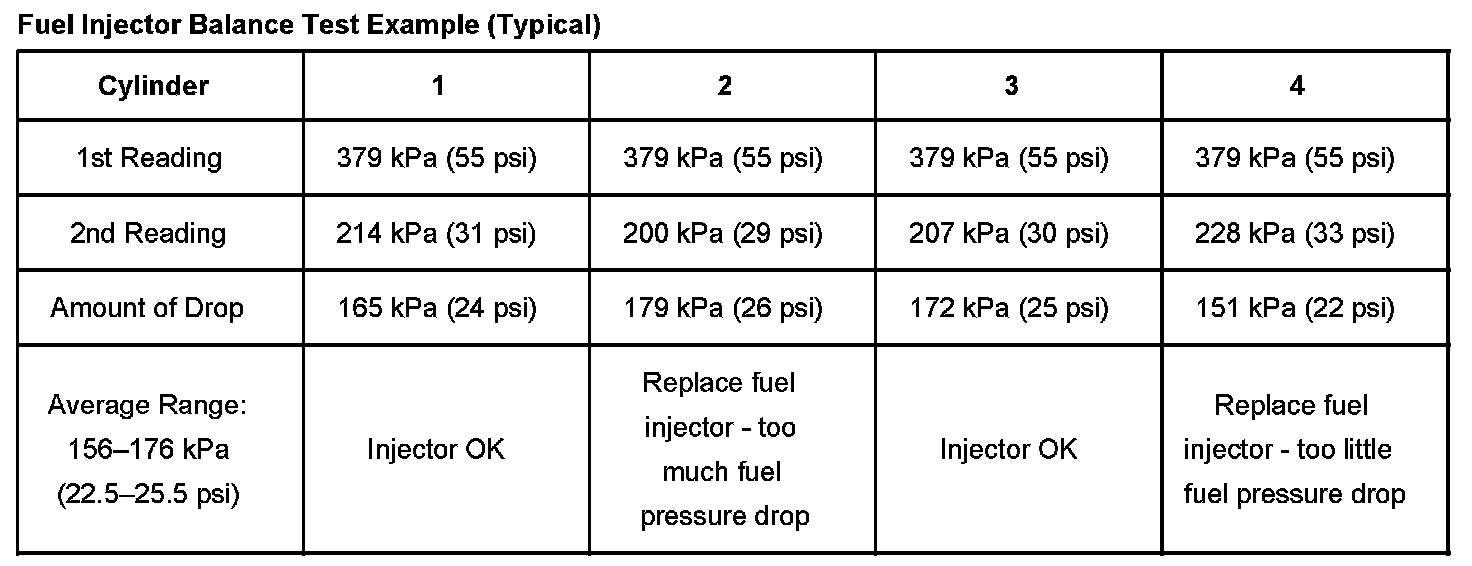 SYSTEM DESCRIPTIONFuel Injector Balance Test Example (Typical):