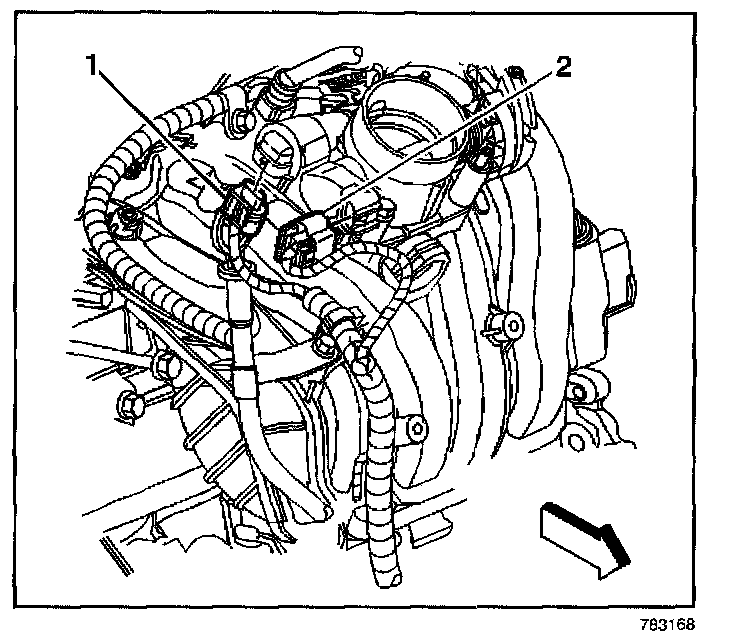 3. Connect the TP sensor harness connector (2).