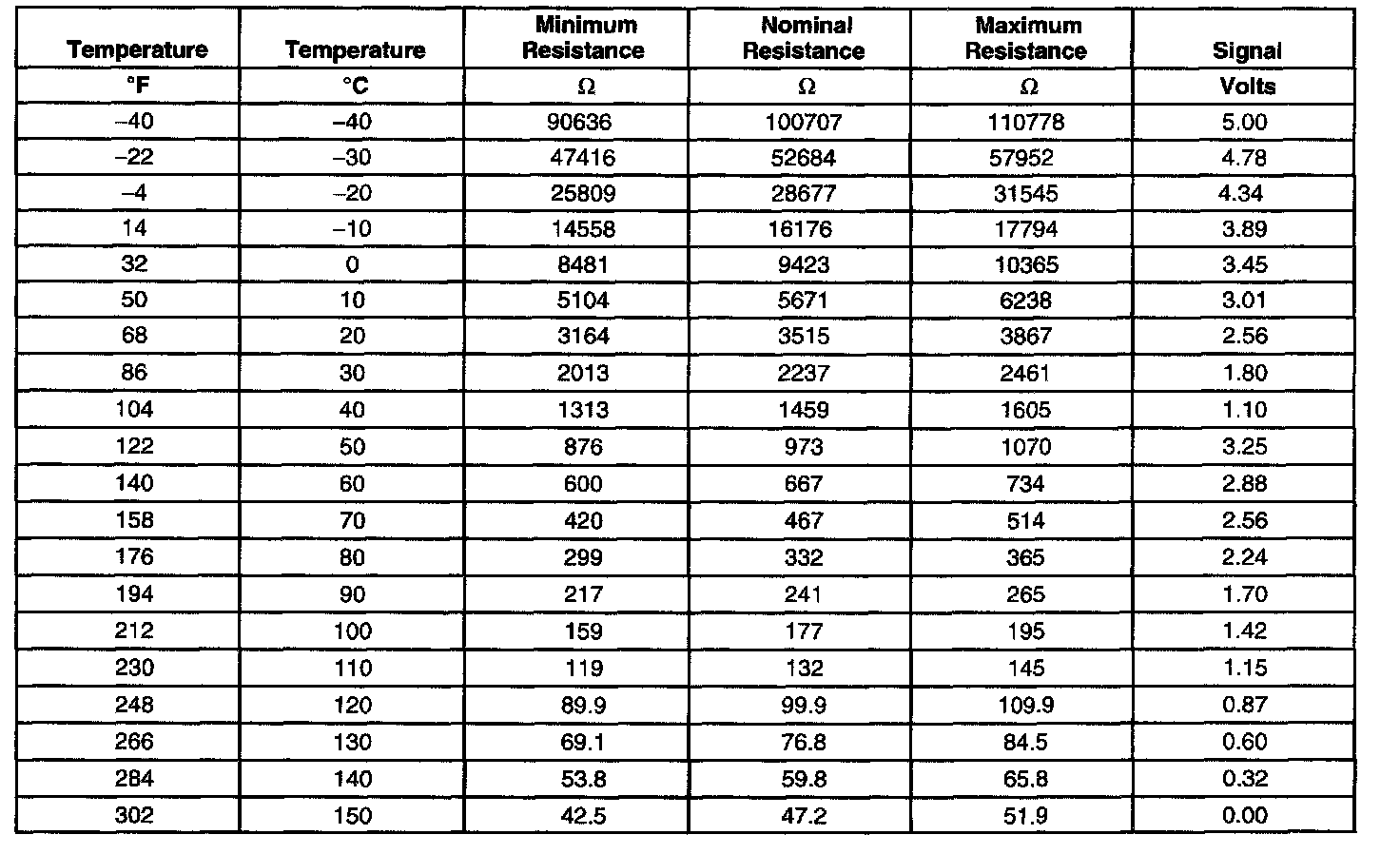 Transmission Fluid Temperature (TFT) Sensor Specifications