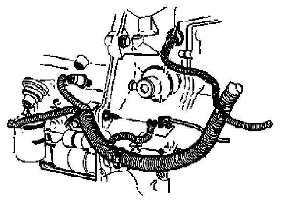 8. Remove the nut retaining the ground cable to the bellhousing stud.