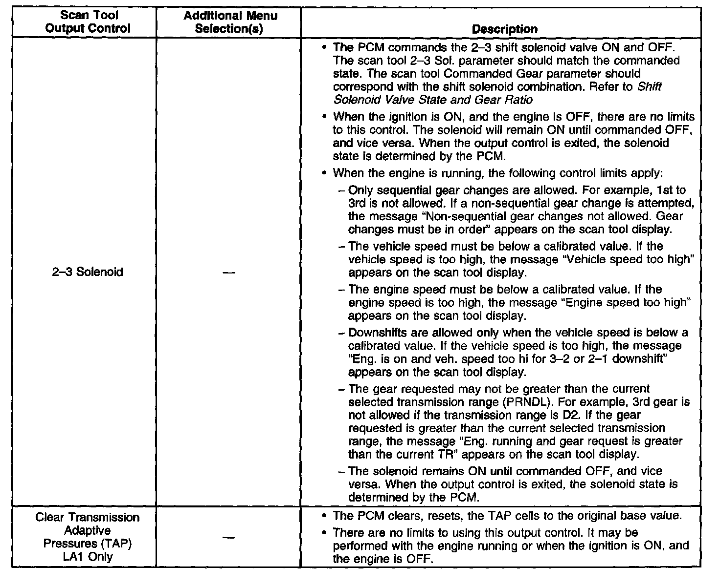 Scan Tool Output Controls