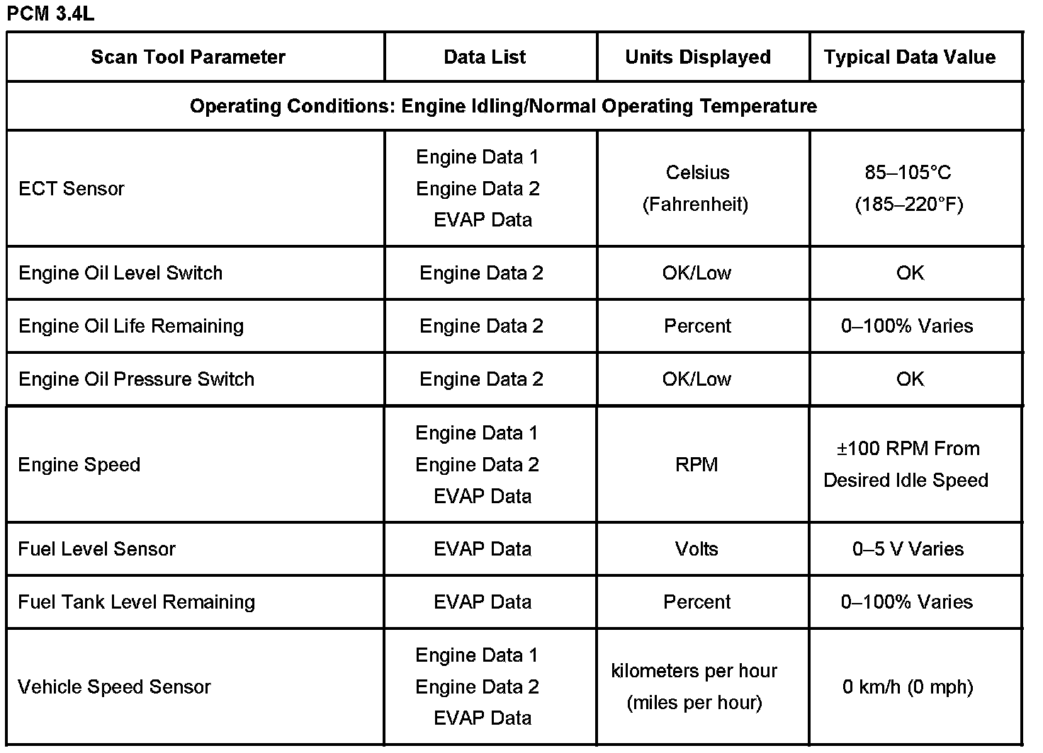 Scan Tool Data List - Powertrain Control Module (PCM)