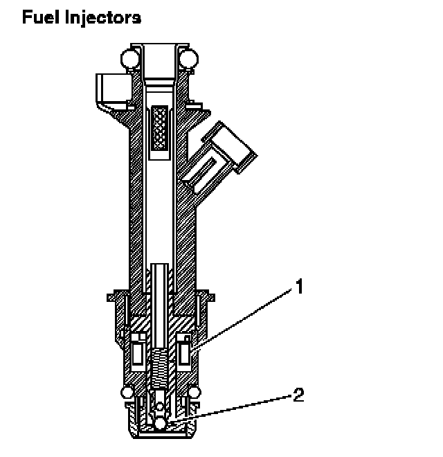 The Multec 2 fuel injector assembly is a solenoid operated device, controlled by the PCM, that meters pressurized fuel to a single engine cylinder. The PCM energizes the high-impedance (12.0 ohms) injector solenoid (2) to open a normally closed ball valve (3). This allows fuel to flow into the top of the injector, past the ball valve, and through a director plate at the injector outlet. The director plate has four machined holes that control the fuel flow, generating a spray of finely atomized fuel at the injector tip. Fuel from the injector tip is directed at the intake valve, causing it to become further atomized and vaporized before entering the combustion chamber. An injector stuck partly open can cause a loss of pressure after engine shutdown. Consequently, long cranking times would be noticed on some engines.