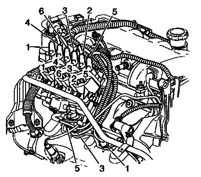 3. Install the spark plug wires 1, 3, and 5 to the engine right side spark plugs.