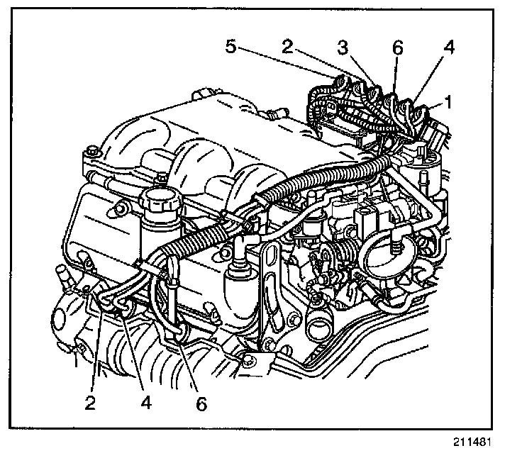 2. Remove the spark plug wires 2, 4, and 6 from the engine left side spark plugs.