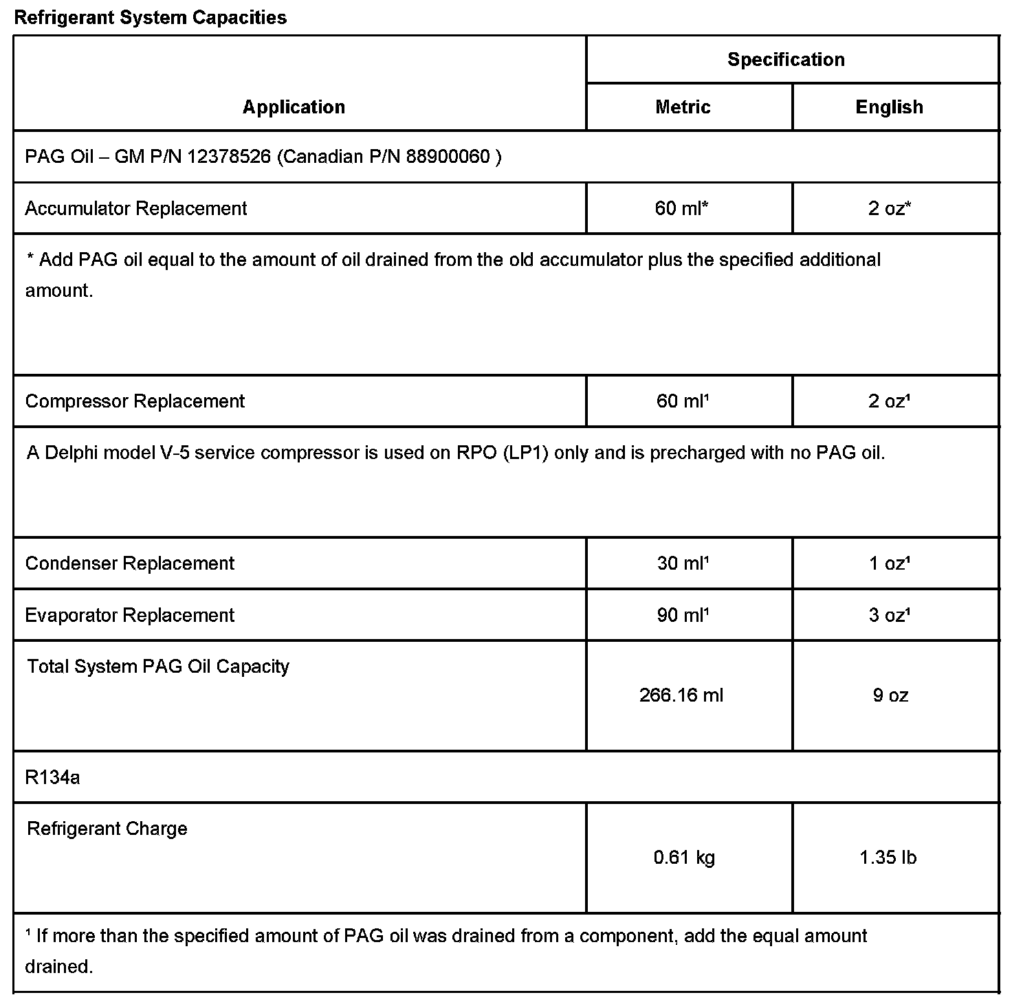 Capacity Specifications