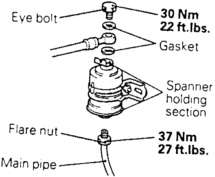 3. Hold fuel filter and loosen eye bolt and flare nut, Fig. 58.