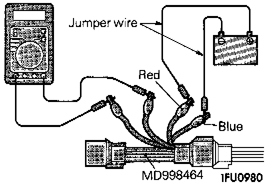 CAUTION: Be very careful when connecting the jumper wires; incorrect connection can damage the heated oxygen sensor (front).