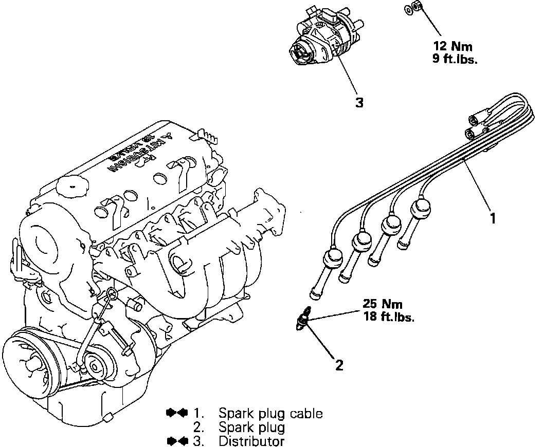 5. Remove distributor mounting nut, then the distributor assembly from engine.