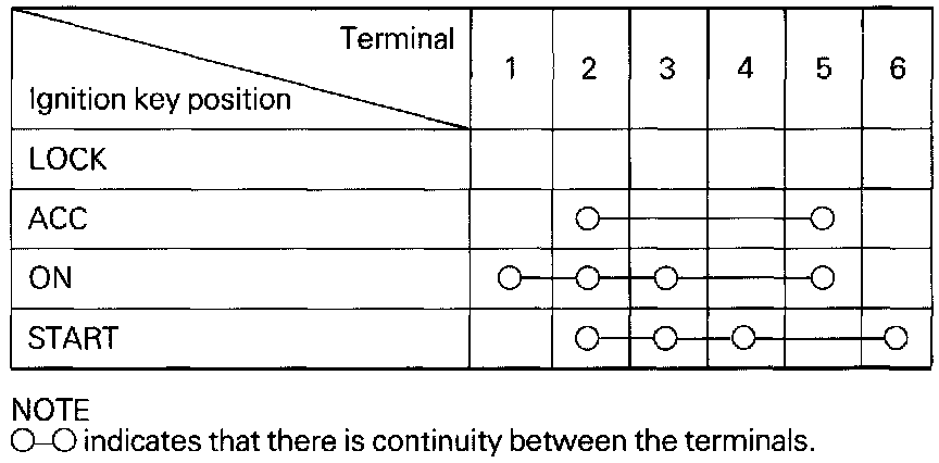 2. Disconnect the wiring connector from the ignition switch, and connect an ohmmeter to the switch side connector.