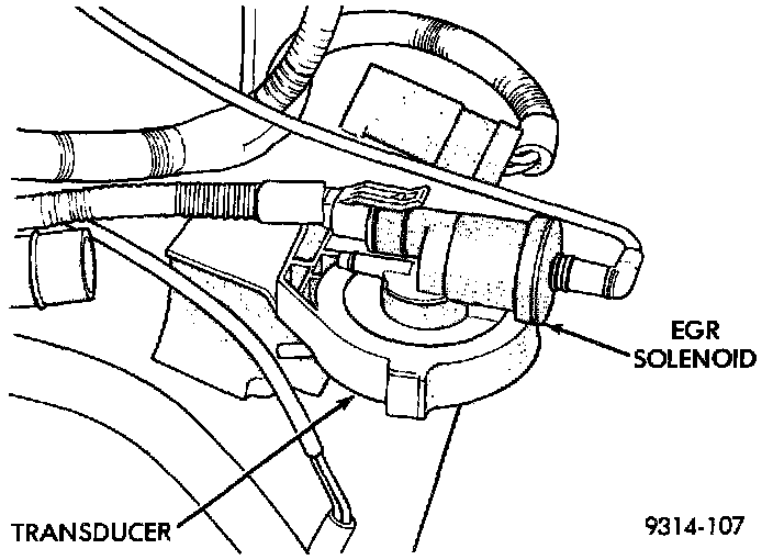 The electronic EGR transducer contains an electrically operated solenoid and a back-pressure transducer. The Powertrain Control Module (PCM) operates the solenoid. The PCM determines when to energize the solenoid. Exhaust system backpressure controls the transducer.