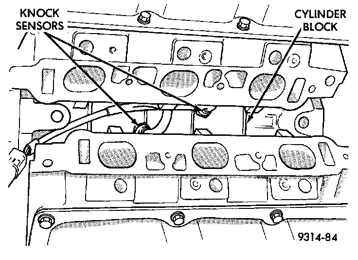 The engine uses two knock sensors. The sensors are bolted into the cylinder block, directly below the intake manifold.
