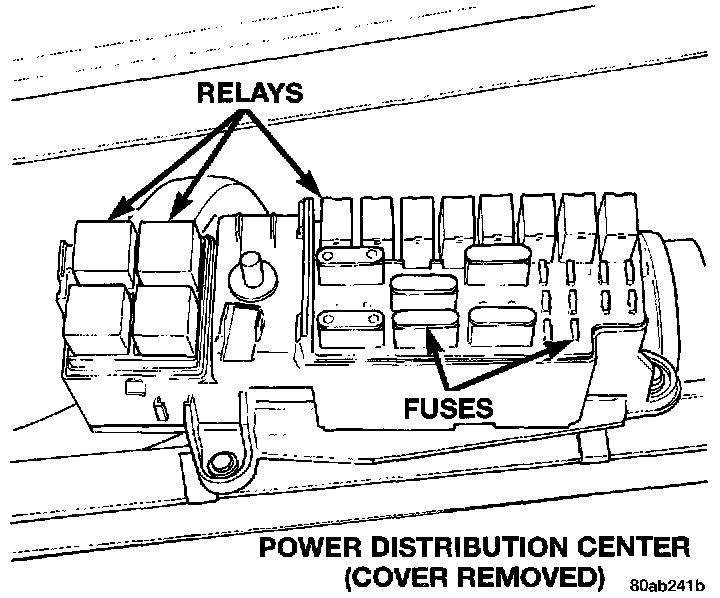 NOTE: Before diagnosing or servicing the fuel injection system, perform a visual inspection for loose, disconnected, or misrouted wires and hoses. A thorough visual inspection that includes the following checks saves unnecessary test and diagnostic time.Fig. 36 Power Distribution Center: