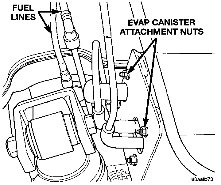 14. Inspect hose connections at the EVAP canister for leaks. Remove the air cleaner to access the EVAP canister.
