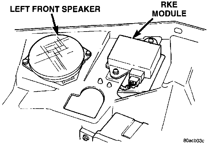 2. Remove screws holding RKE module to instrument panel structure. Located at the top left corner, to the right of the speaker.
