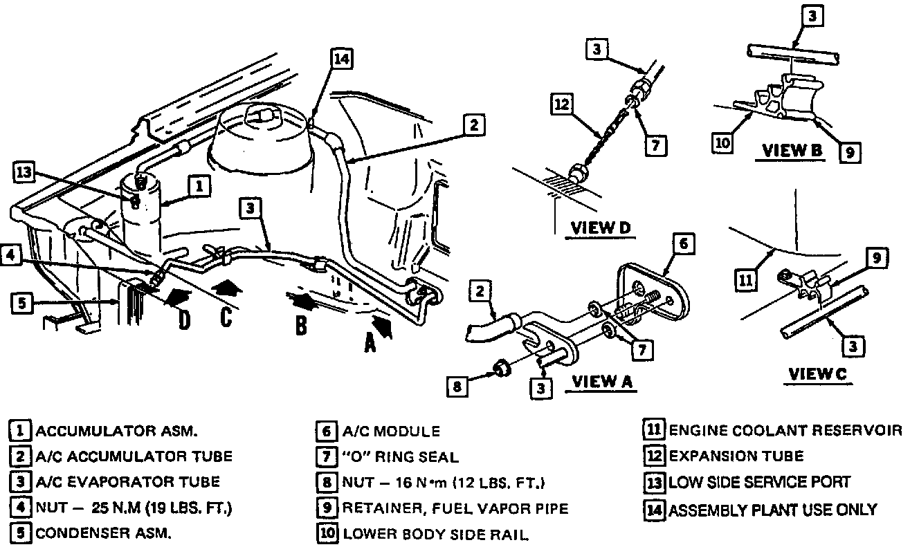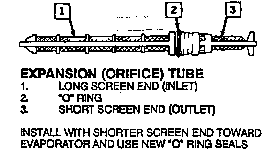 The Expansion (Orifice) Tube is located at the condenser to evaporator tube connection in the evaporator tube.