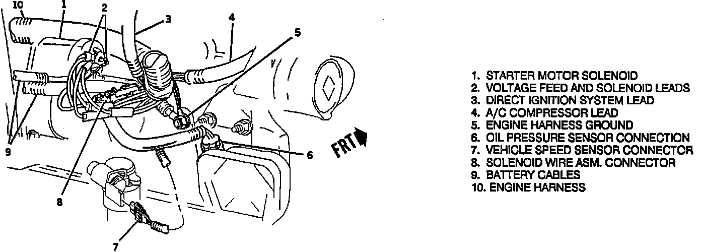 5 = ENGINE WIRING HARNESS TO TOP OF ENGINE