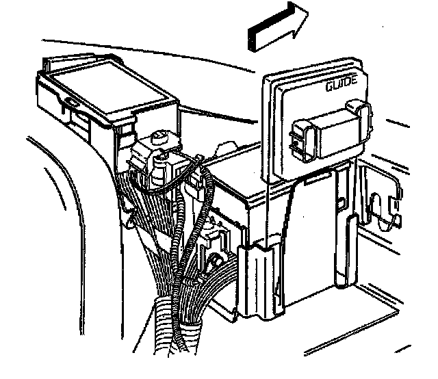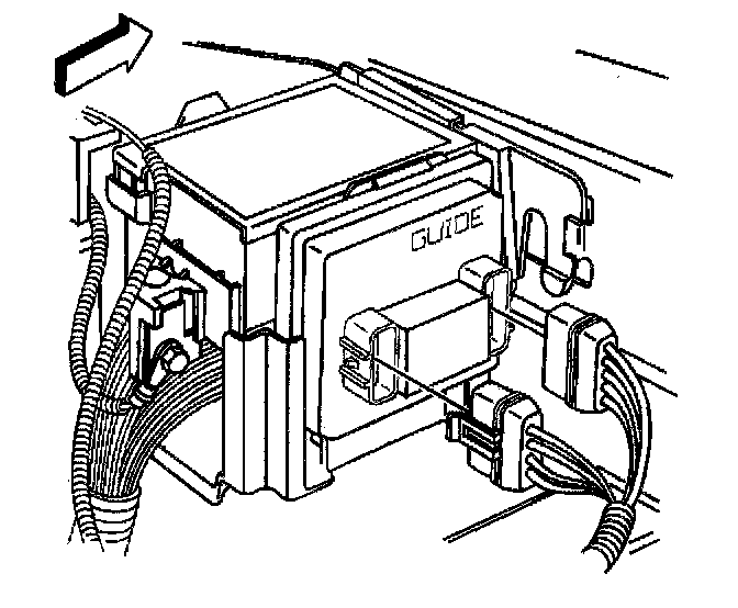 1. Install the headlamp opening door actuator control module to the forward lamp harness bracket.