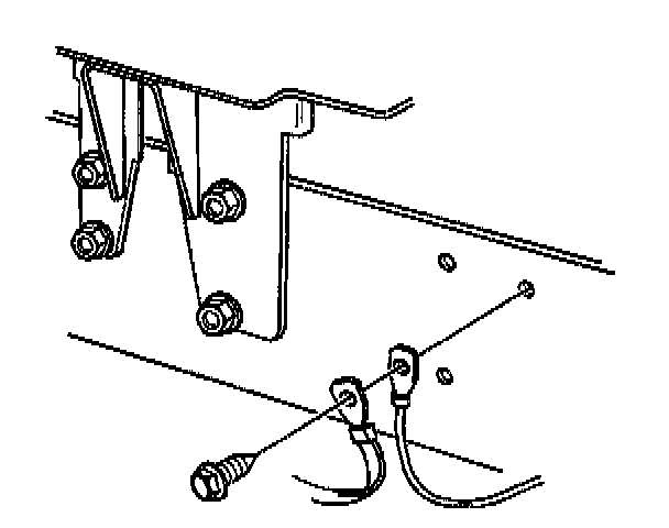 4. Remove the wiring harness ground bolt and Radio Frequency (RF) ground strap and cruise control ground lead from the front rail.